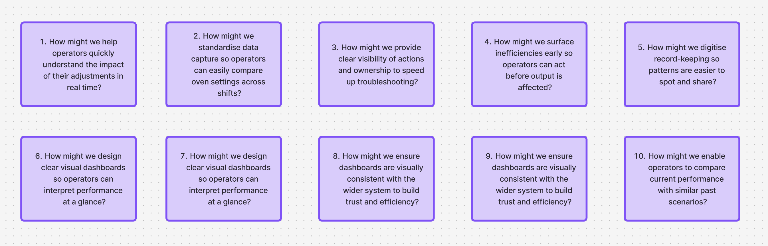 1. Visibility & Feedback Goal: Provide operators with clear visibility of how changes affect oven performance.